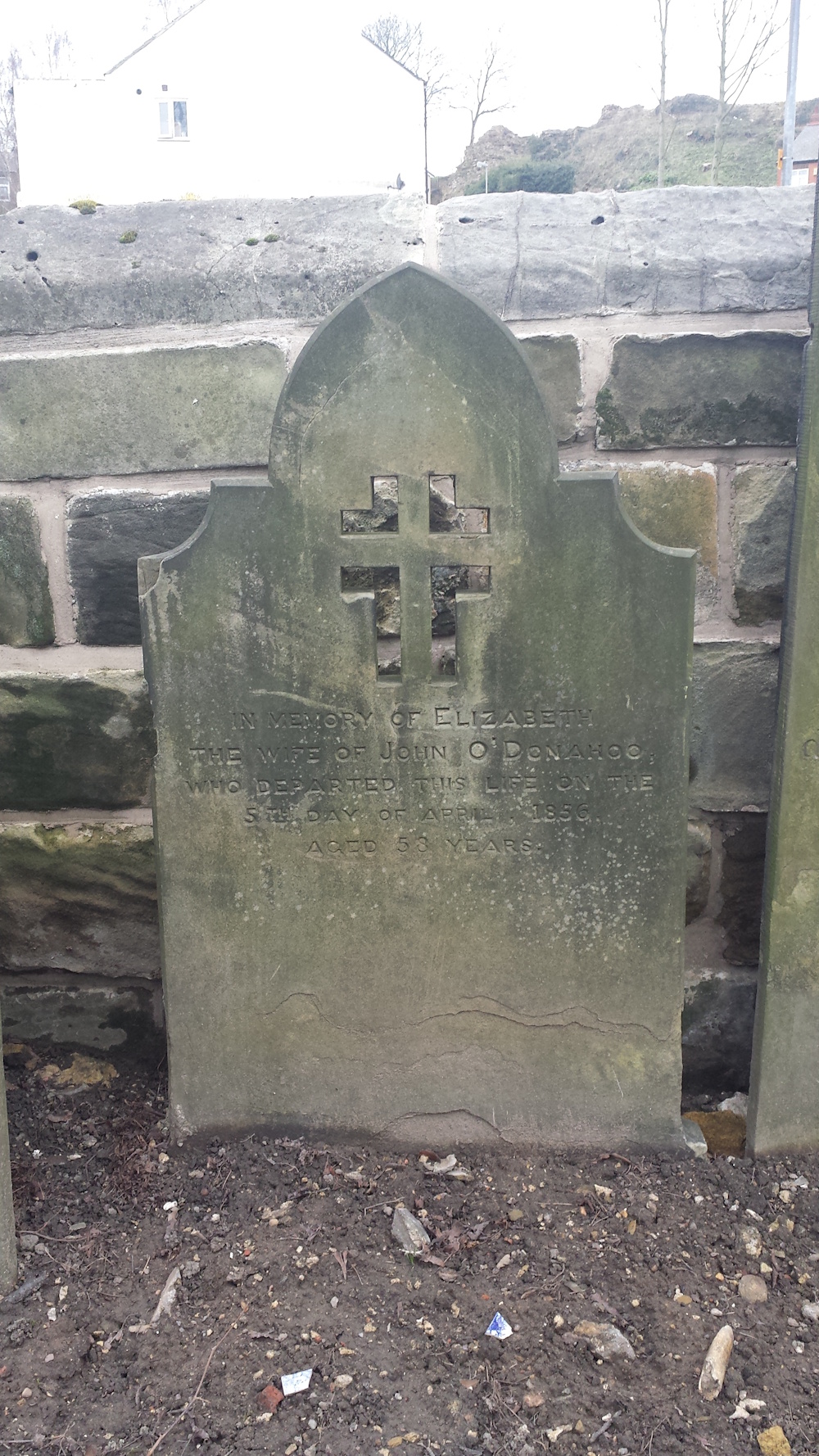 It's much easier to carve a cross into a gravestone rather than carve the surrounding stone to create a Protruding Cross, such as this Latin Cross on a gravestone.